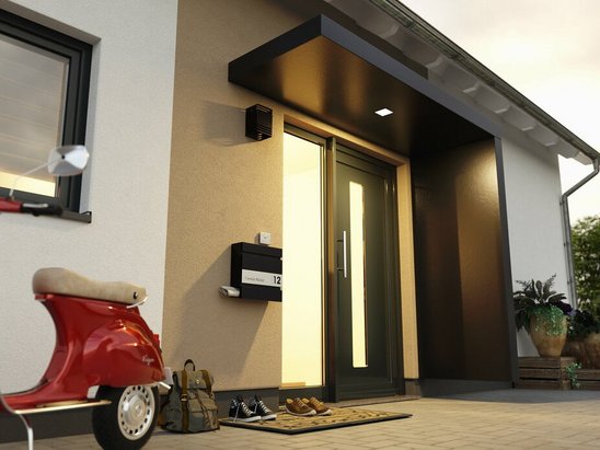 Eine weitere Möglichkeit stellt das Vordach dar, dass dem Haus einen ganz besonderen Hauseingang verleiht und Sie vor Regen, Schnee, Frost oder starker Sonneneinstrahlung schützt.